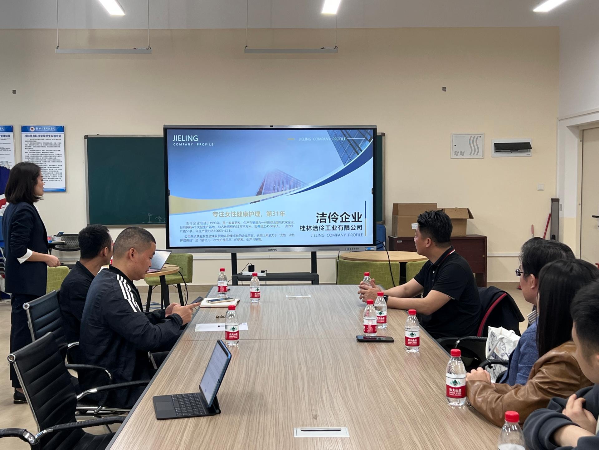 3月26日上午,商学院与桂林知名企业洁伶卫生巾举行校企合作洽谈会。商学院由张振华院长助理带队,实践教研室主任尤通、实践教学秘书阳明真出席会议,双方就电商人才培养、实训基地建设等合作事项进行了深入交流。