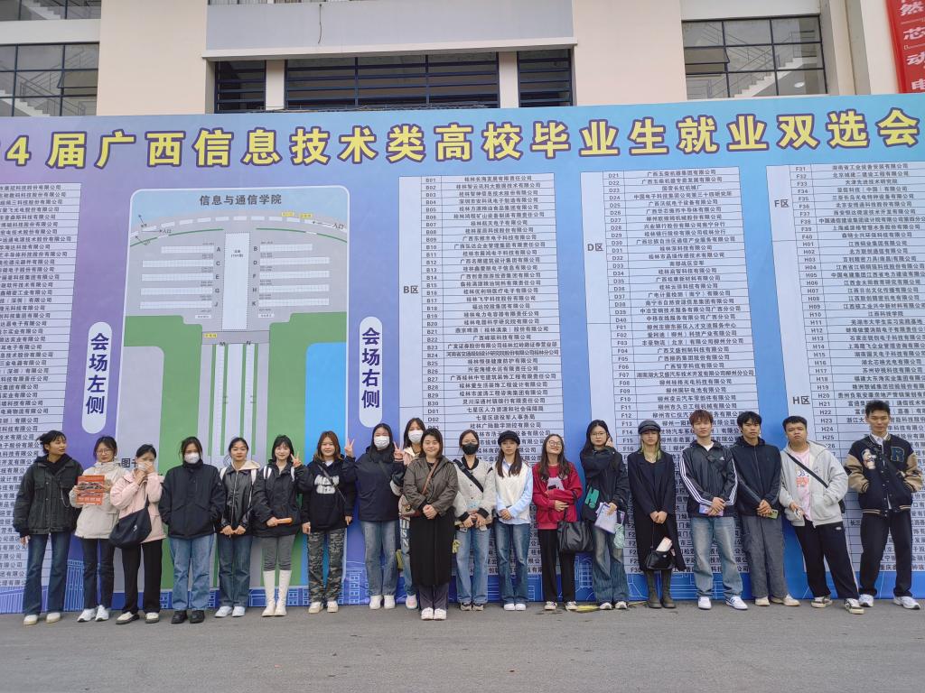 为切实做好2024届毕业生就业工作,推动我院毕业生高质量就业。10月20日,由自治区教育厅、自治区人社厅、自治区国资委主办,桂林电子科技大学承办的2024届广西信息技术类高校毕业生就业双选会在花江校区正德广场顺利举行。商学院毕业班辅导员王玮琪带队参加。