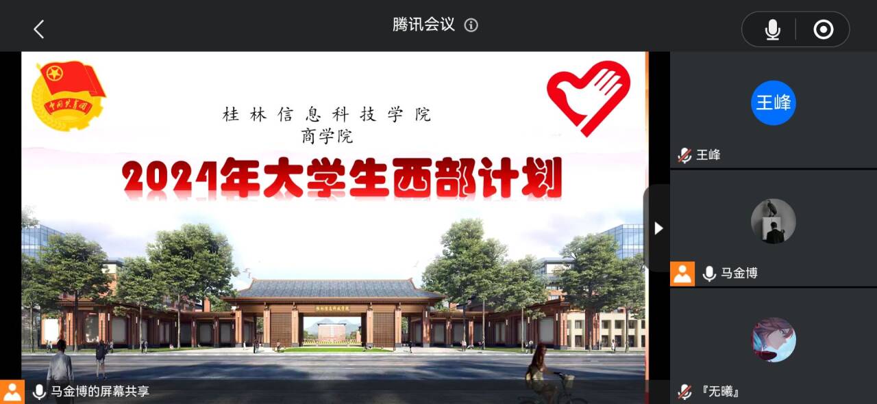 为进一步做好我院2024年西部计划的宣传动员工作,弘扬“奉献、友爱、互助、进步”志愿服务精神,引领新时代青年到祖国需要的地方建功立业,4月8日,商学院开展2024年大学生志愿服务西部计划宣讲会。宣讲会以线上形式进行,学院团委书记马金博、毕业班辅导员及全体应届毕业生参会。