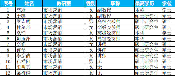 市场营销专任教师