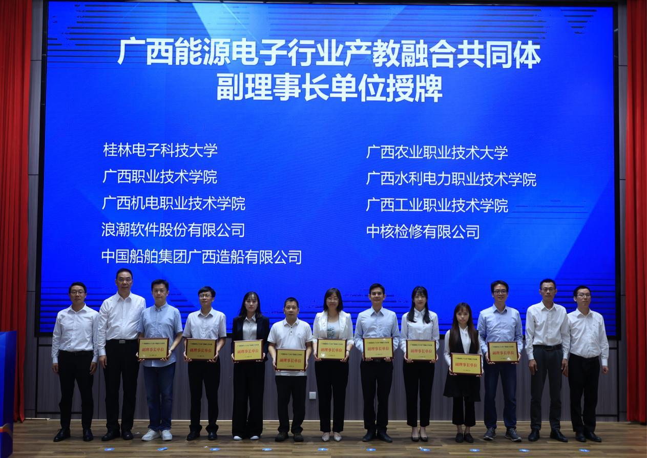 10月25日,广西能源电子行业产教融合共同体成立大会暨首届理事会全体成员大会在广西电力职业技术学院召开,广西壮族自治区教育厅党组成员、副厅长伍锦昌莅临会议,来自区内外的高等学校、职业学校、科研机构、上下游企业等46家单位的80余名代表参加了会议。beat365官网副校长陈玲萍、副校长刘跃峰率校企合作处处长李晓健、科技处处长杨国辉参加了此次会议。