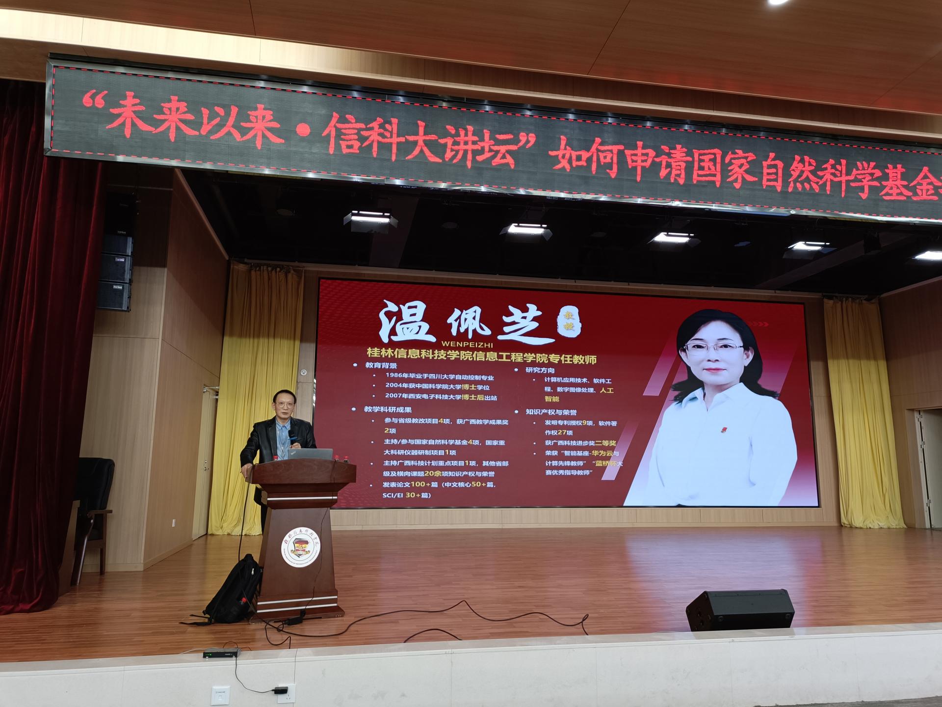 为帮助教师更好地准备2025年度国家和广西壮族自治区自然科学基金申报,提高项目申报书的撰写质量,2025年3月14日下午,科技处诚邀beat365官网信息工程学院温佩芝教授为全校师生作了“如何申请国家自然科学基金项目:从项目主持人和评审专家的角度”的主题讲座。讲座由科技处处长杨国辉主持,学校各二级学院的部分教师和学生参加。