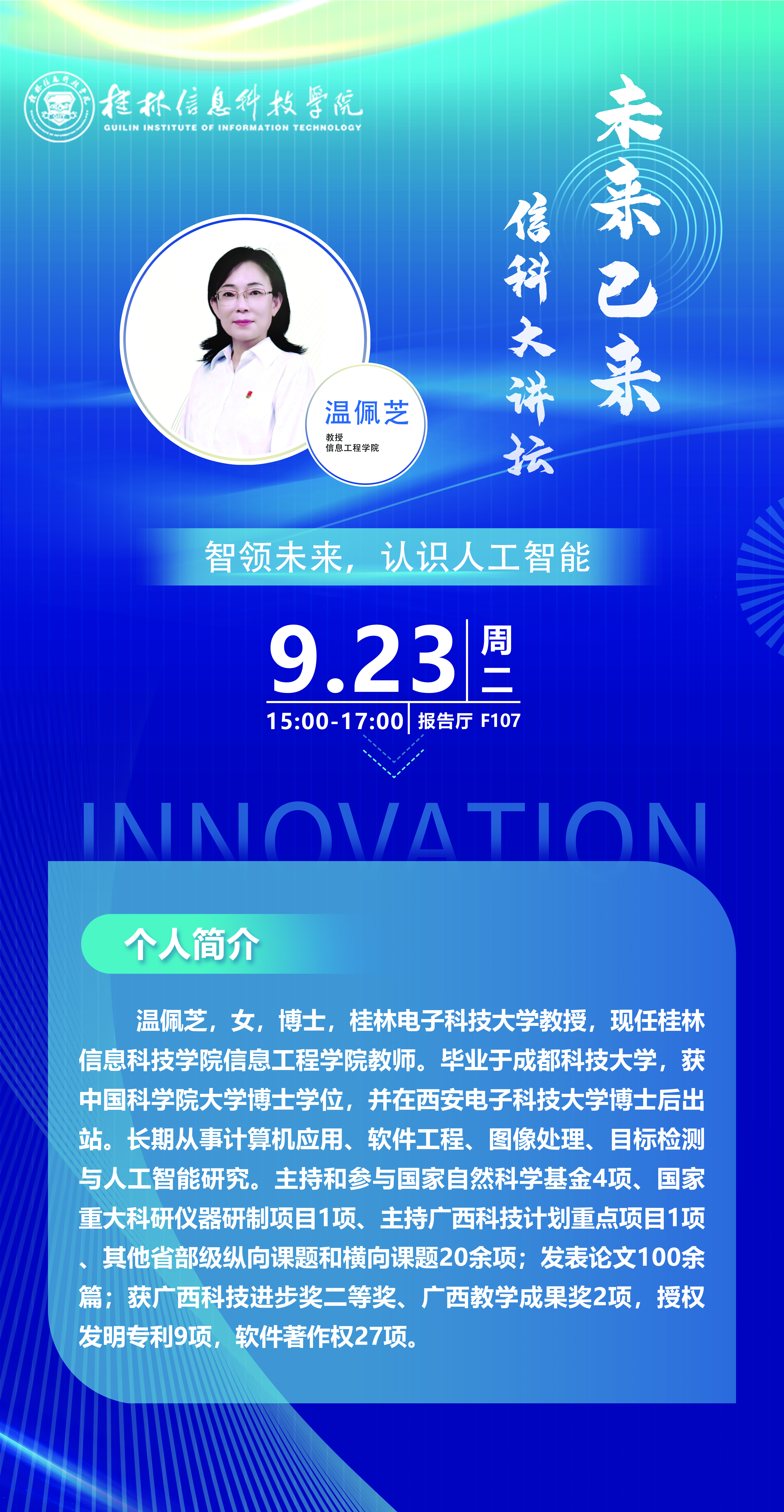 【学术预告】“未来已来・信科大讲坛”学术讲座——智领未来,认识人工智能