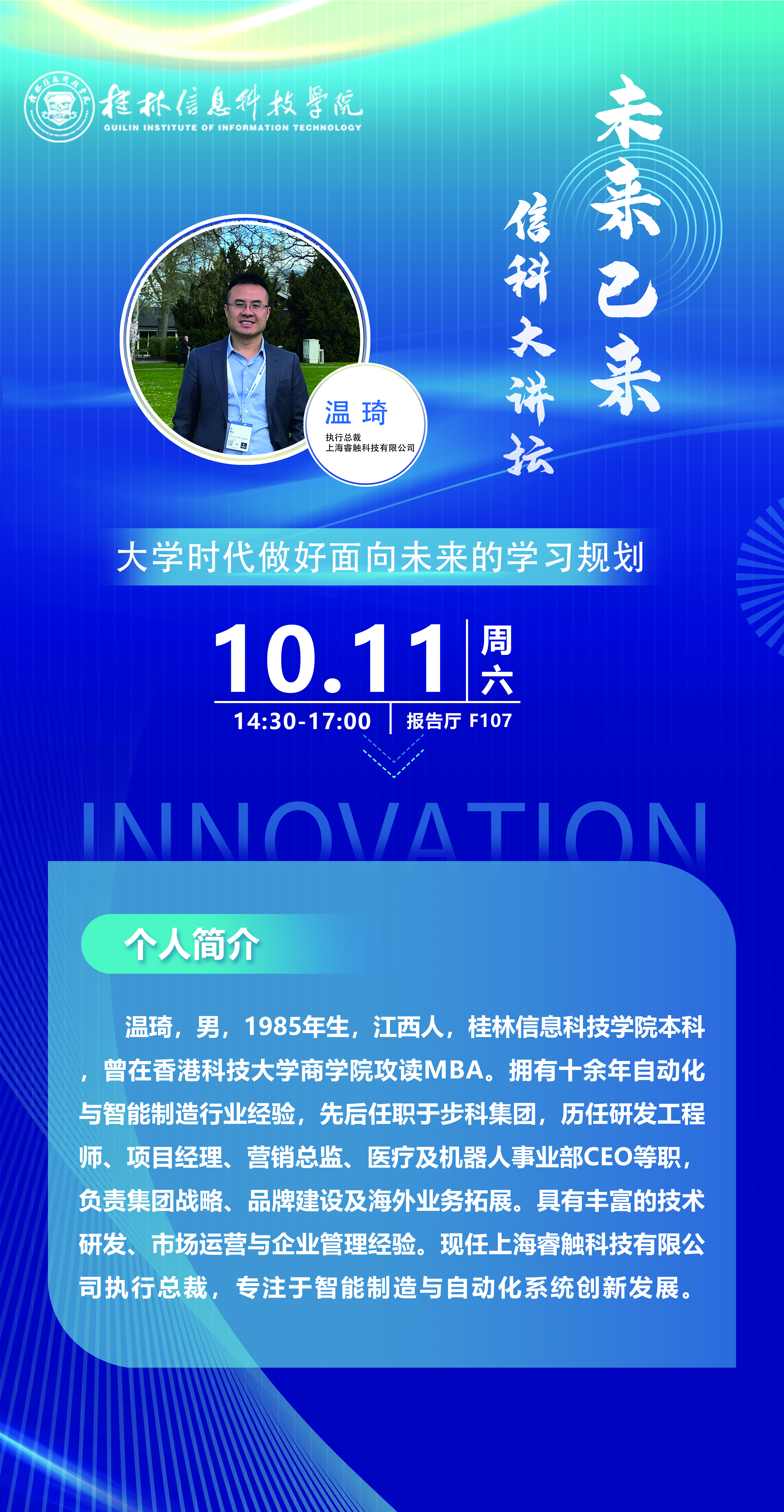 【学术预告】“未来已来・信科大讲坛”学术讲座——大学时代做好面向未来的学习规划