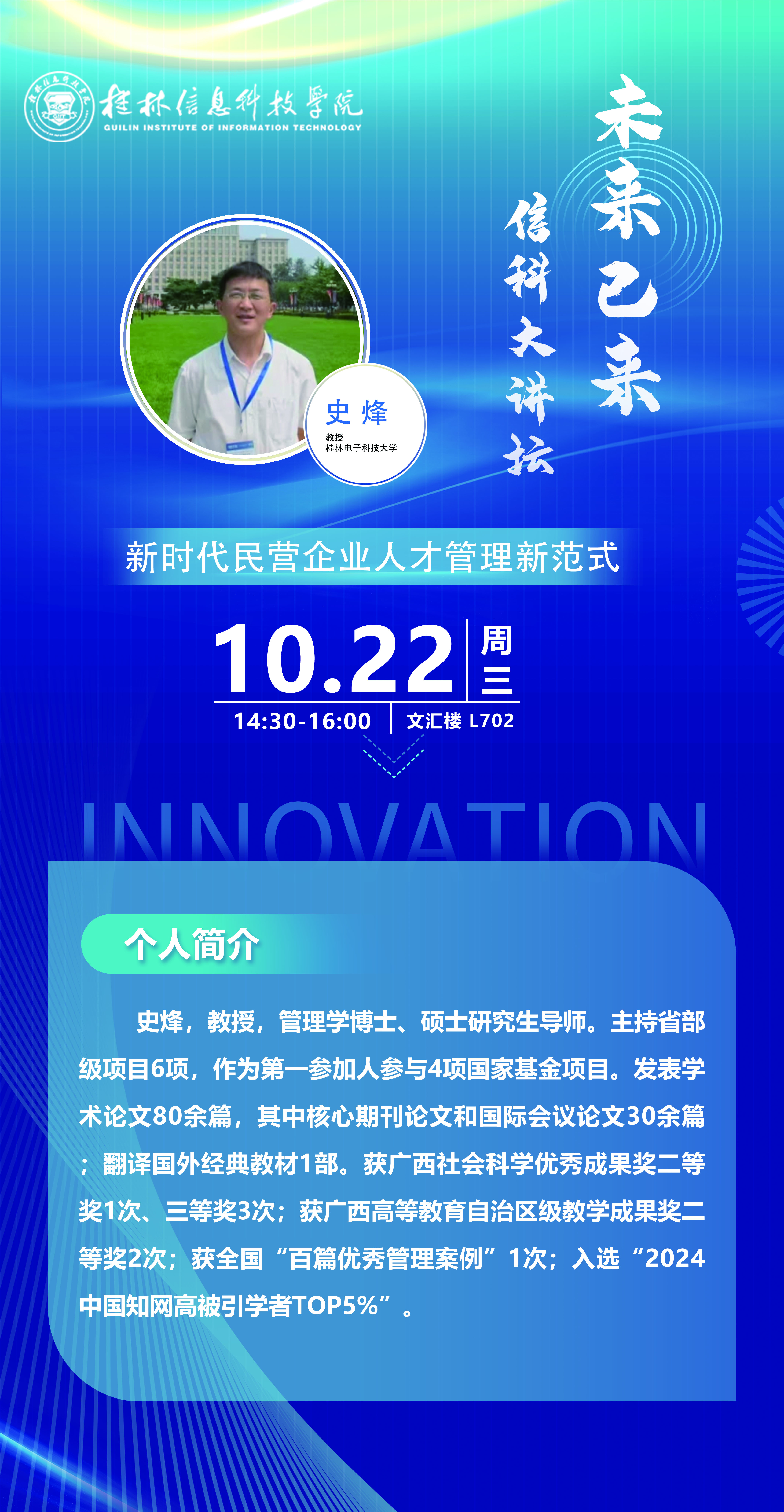 【学术预告】“未来已来・信科大讲坛”学术讲座——新时代民营企业人才管理新范式