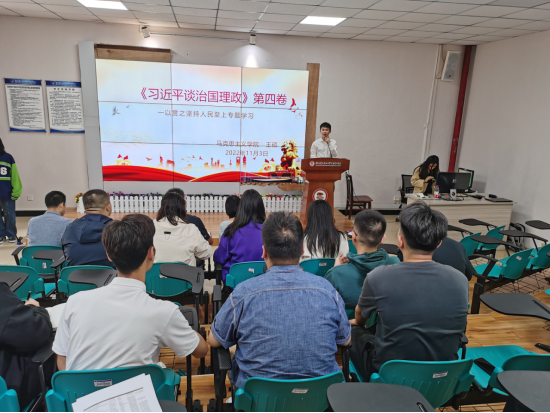 根据学校党委的安排,11月3日中午,体育与健康学院与商学院在11408教室邀请马克思主义学院王硕老师讲授学习《习近平谈治国理政》第四卷心得体会专题党课,此次专题党课体育与健康学院与商学院全体党员老师参加。