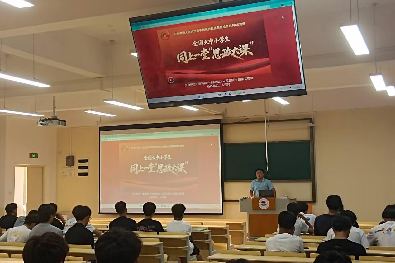 9月18日中午,在E308,在纪念中国人民抗日战争暨世界反法西斯战争胜利80周年之际,体育与健康学院开展“同上一堂思政课”,让青年学子从历史中汲取力量,将个人追求融入强国伟业。