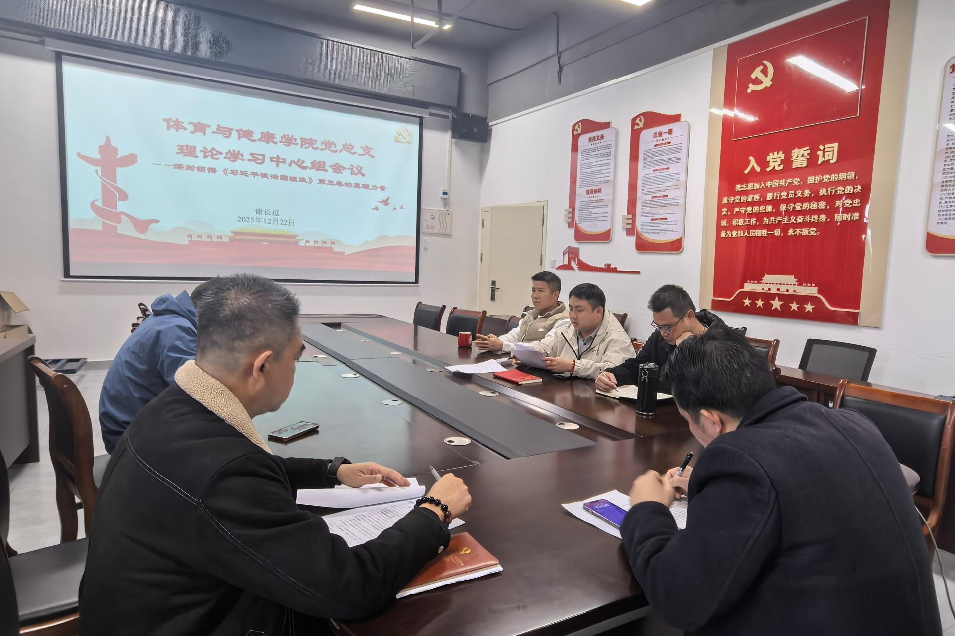 为深入学习贯彻党的创新理论,推动全体党员干部深刻领悟《习近平谈治国理政》第五卷的真理力量与实践伟力,体育与健康学院党总支理论学习中心组于12月22日召开专题学习会,会议由党总支副书记谢长远主持,中心组成员结合工作实际,从理论逻辑、历史逻辑、实践逻辑三个维度展开交流。