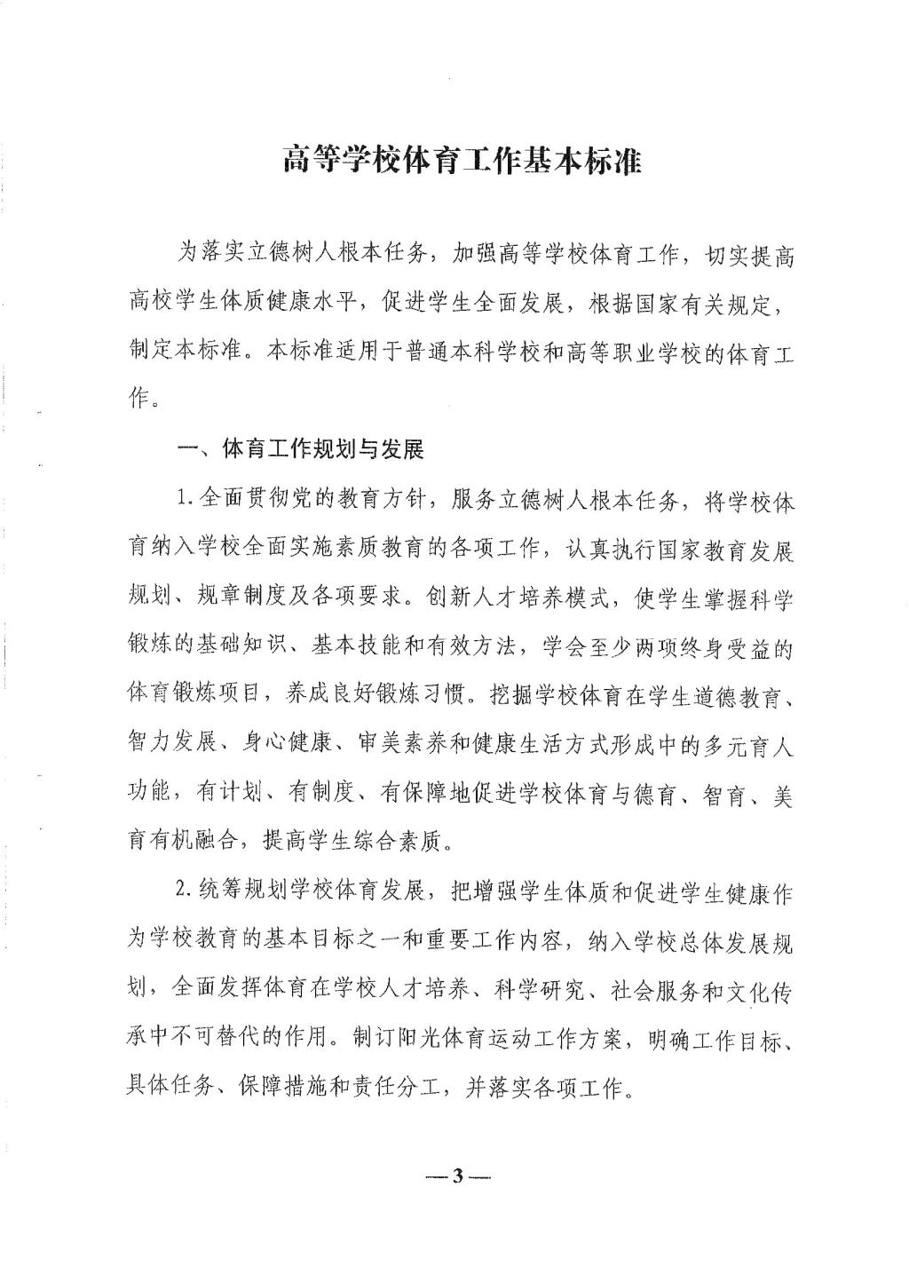 高等学校体育工作基本标准