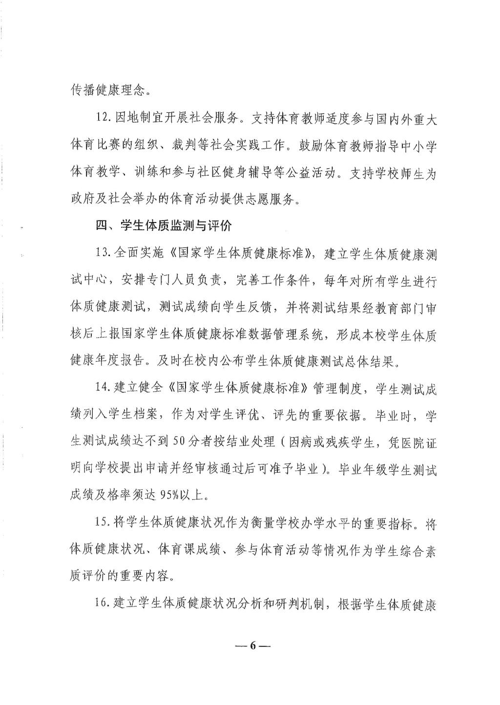 关于全面加强和改进新时代学校体育工作的意见