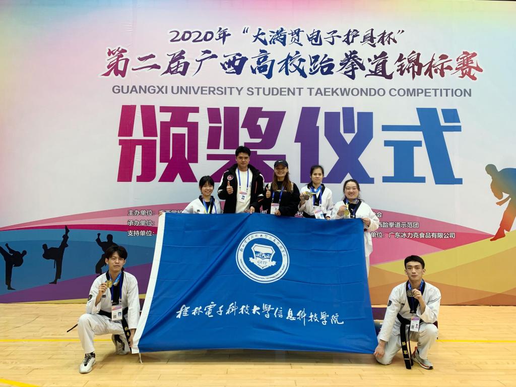 12月26日至27日,由广西学校体育卫生艺术学会主办,广西民族大学承办的2020年第二届广西高校跆拳道锦标赛在广西民族大学体育馆举行。我院由体育教研部钟依岑和薛伟佳老师任教练的跆拳道代表队参加本次赛事并斩获包含2项冠军在内的8个奖项。