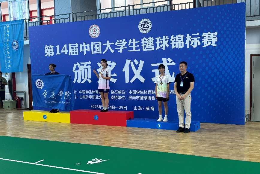 近日,第14届中国大学生毽球锦标赛在山东外事职业大学体育馆举行。本次比赛由beat365官网体育与健康学院严泽平老师带队参赛,队员吴玉连同学在花式毽球项目中表现突出,一举斩获两项荣誉。
