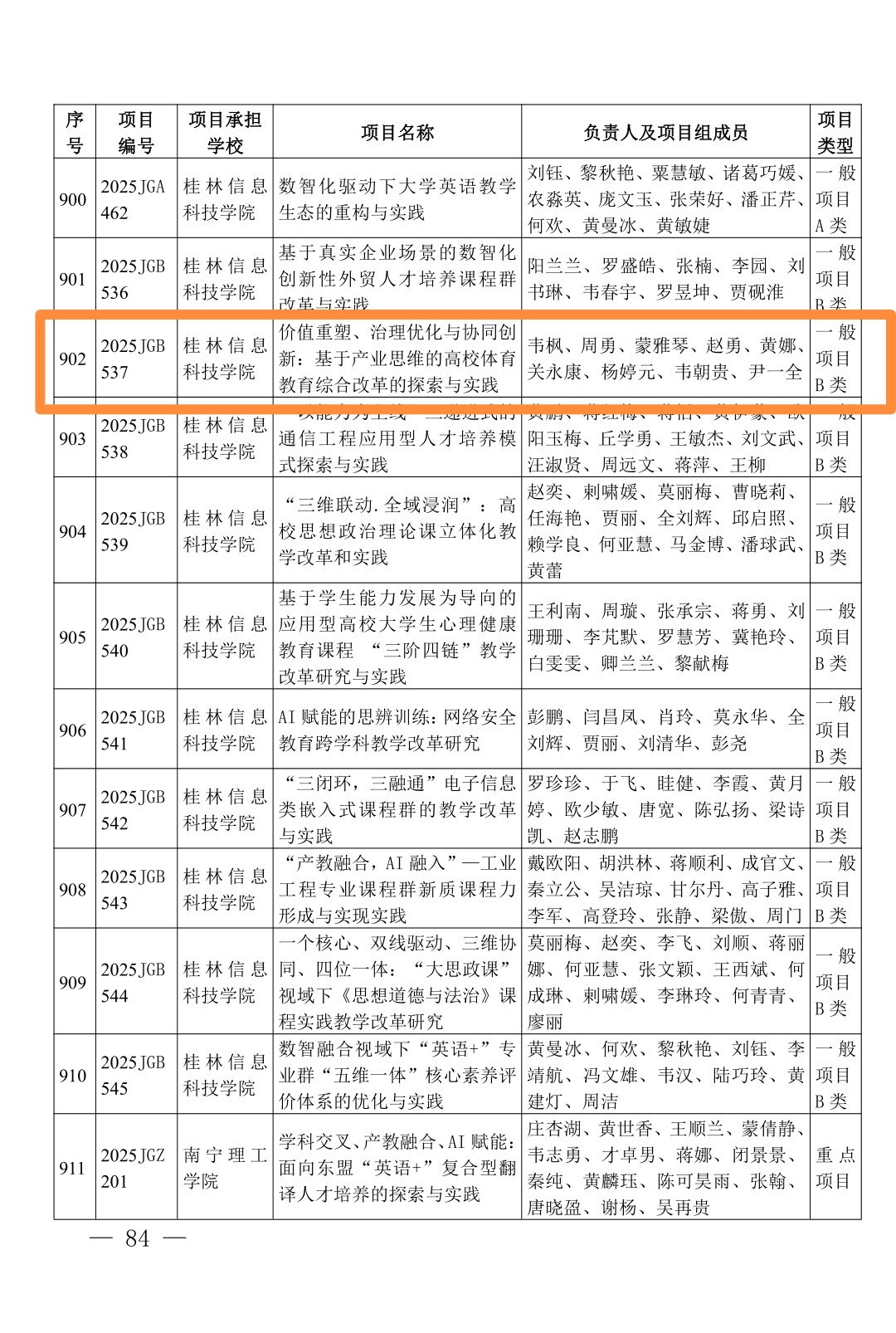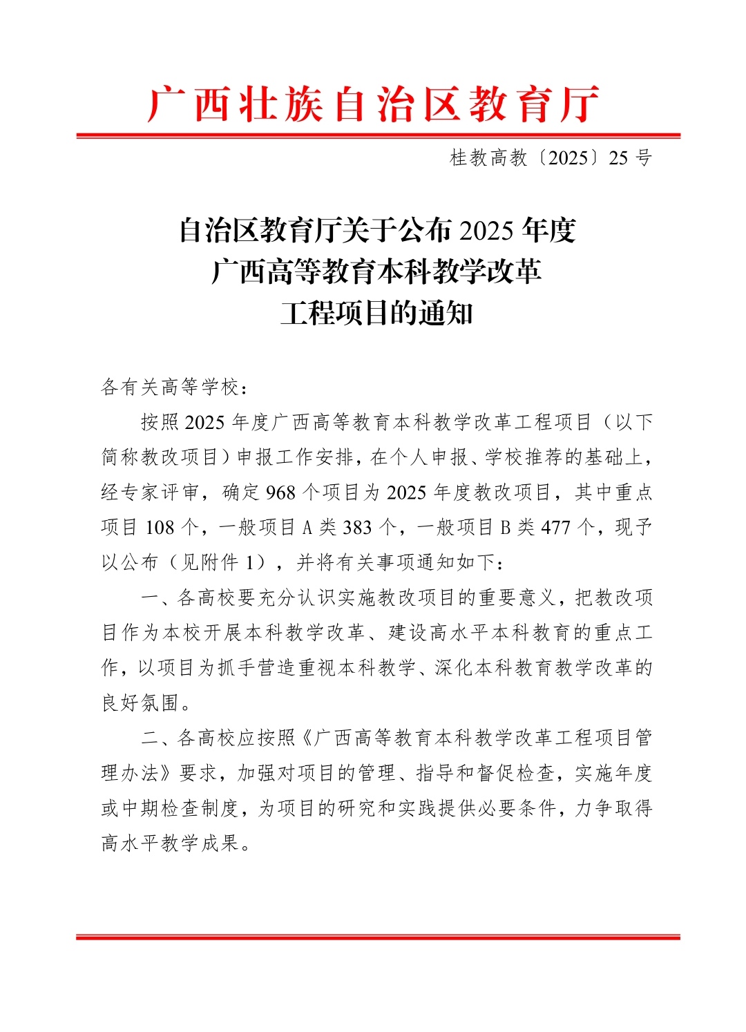 2025年度广西高等教育本科教学改革工程项目