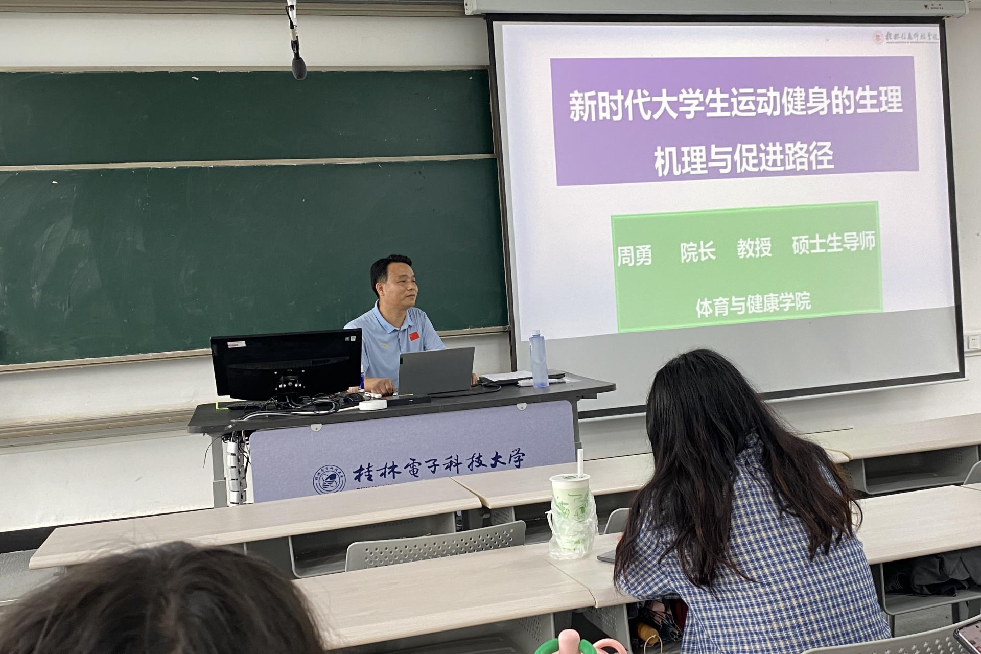 5月16日,院长周勇教授受邀到桂林电子科技大学花江校区作“新时代大学生运动健身的生理机理与促进路径”学术讲座,吸引了众多学生参与。讲座旨在帮助大学生深入理解运动对身体健康的影响,引导大学生科学健身,养成良好的运动习惯。