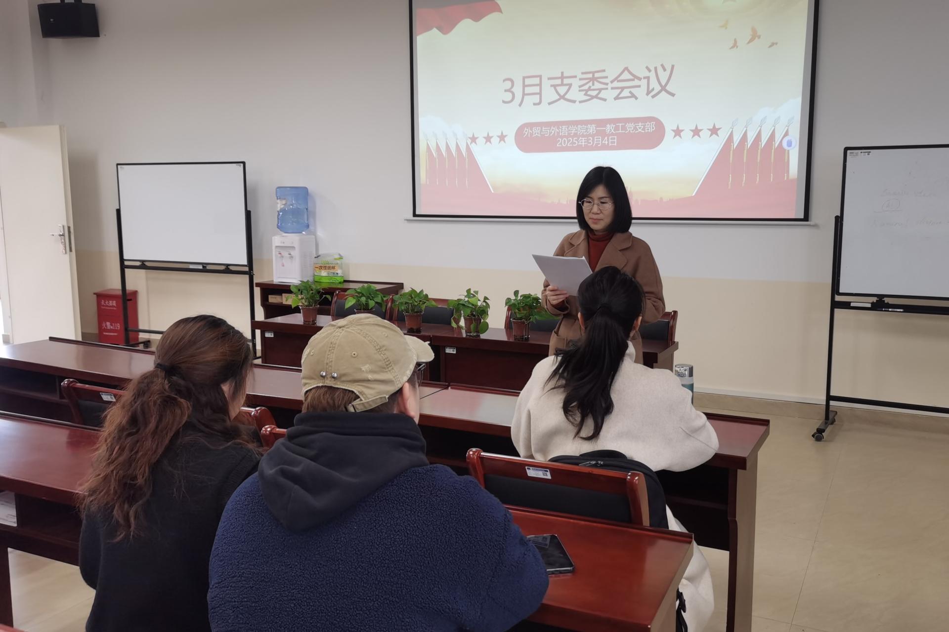 为加强基层党组织建设,更好发挥党组织战斗堡垒作用和党员的先锋模范作用,3月4日,外贸与外语学院第一教工党支部在博文楼 F512 会议室召开党员大会,选举产生新一届支部委员会。