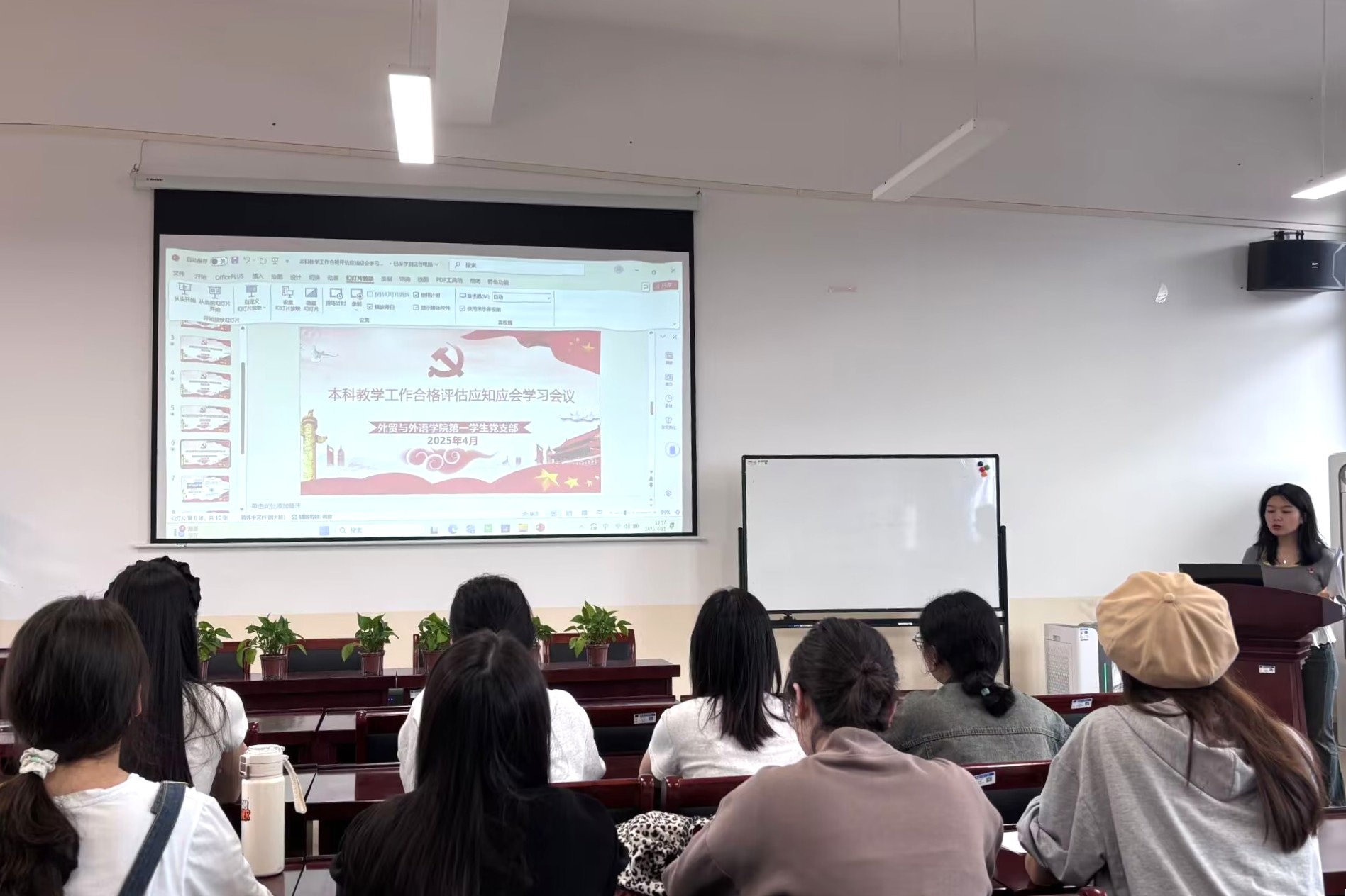 4月10日,外贸与外语学院第一学生党支部在博文楼F512开展本科教学工作合格评估针对性学习活动。