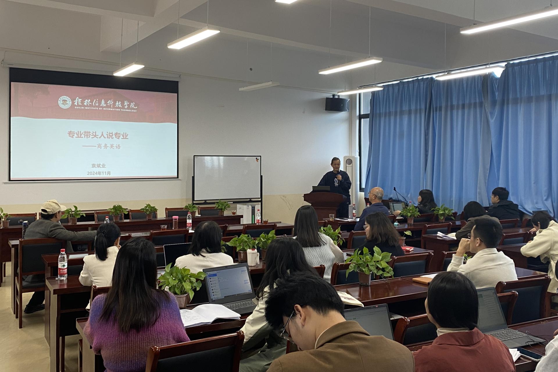 活动中,国际经济与贸易专业带头人赵相忠教授、英语(对外汉语)专业带头人韦储学教授、商务英语专业带头人袁斌业教授,国际商务专业教研室主任高宇以及酒店管理专业教研室主任黄艳,分别进行“说专业”。各专业带头人以先进的理念为先导,准确把握专业定位,凝练专业特色,统览课程体系,对各自的专业作了精彩的阐述。