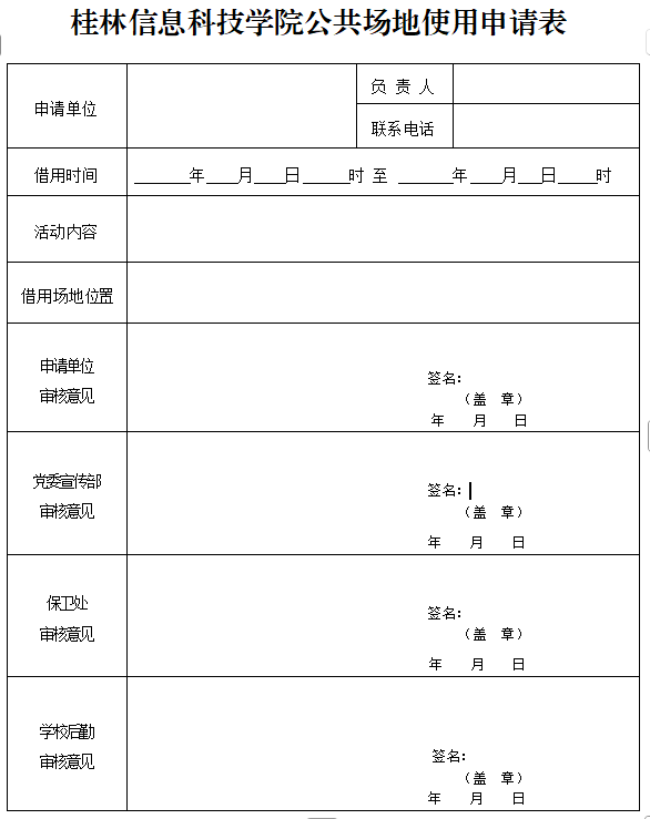 在学校公共区域举办活动(不含体育场所),需要先下载并填写《beat365在线唯一官网公共场地使用申请表》,并按照表格要求完成相应部门的审核,最后上交到后勤服务处办公室(荟萃楼4楼)进行审批备案。负责人不能填写学生姓名,需要填写负责老师或者指导老师的信息。