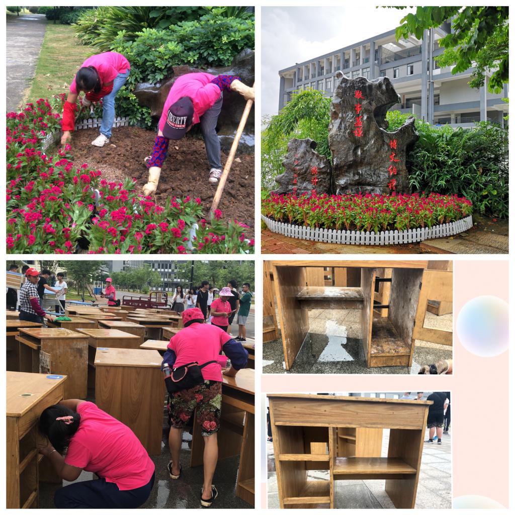 为绿化美化信科校园,增添校园绿化层次感,营造新学期新气象,分散布置摆放大门岗、主干道、行政楼、1-2教学楼的米兰、翠卢莉、鸡冠花、蓝雪花等7种2180棵草花,这些绿植在员工们的手里变幻出各种造型,创造了九月初秋花草缤纷的世界,让新生及家长们在迎新当天直观感受到校园温馨、优美的育人环境。