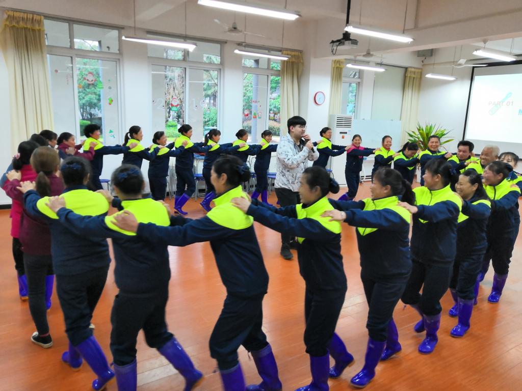 培训由心理协会的张承宗老师全程带队组织,全体参训人员通过游戏方式产生了人员随机组成的二个队伍,在培训师的组织下,先后开展了“萝卜蹲”、“信任之旅”、“穿越电网”等项目的训练,通过活动过程中团队内的组织、沟通、协同配合及团队间的竞争和合作,在轻松愉悦的氛围中增强了员工们的团队意识及集体归属感和荣誉感。每个项目后,各支队伍都回顾和分享活动过程的心得,培训师再进行点评和总结,整个活动给人启发,引入深思。