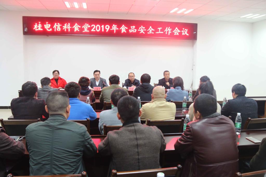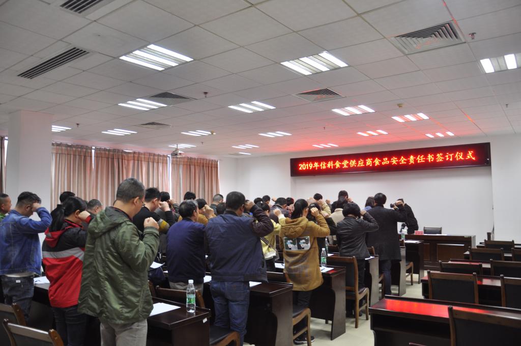3月27日下午,信科食堂召开了2019年食品安全工作会议暨签订安全责任仪式,学校党委书记罗源伟,公司总经理陈中伟及常务副总宋海军及出席会议,饮食中心管理人员及30名供应商参加会议,会议由饮食中心经理莫丽媛主持。