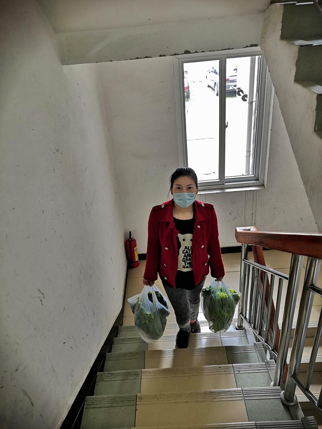 疫情发生后,桂林电子科技大学西区家属区实行了封闭式管控,买菜吃饭成为了小区住户的头等大事,自2月6日起,同在小区的卫志芳发现大家担心的买菜吃菜困难后,第一时间联系了家人,从自家菜地摘了180斤的绿色蔬菜供应给有需求的家属区住户,她根据住户的需求送货上门,一送就是一天,至今为止每天都在坚持。