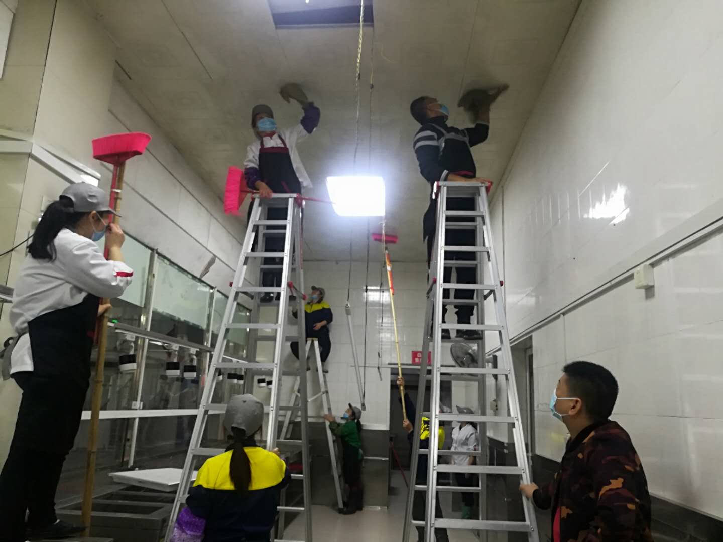 对食堂后厨、就餐区、库房、员工宿舍、各类厨具、餐具进行了消杀,并安排供货商合理错峰供货,储备好了充足的调味品、大米等原材料,保证按时开餐,按规定设立就餐通道,保障就餐人员有间距、有秩序的安全取餐。