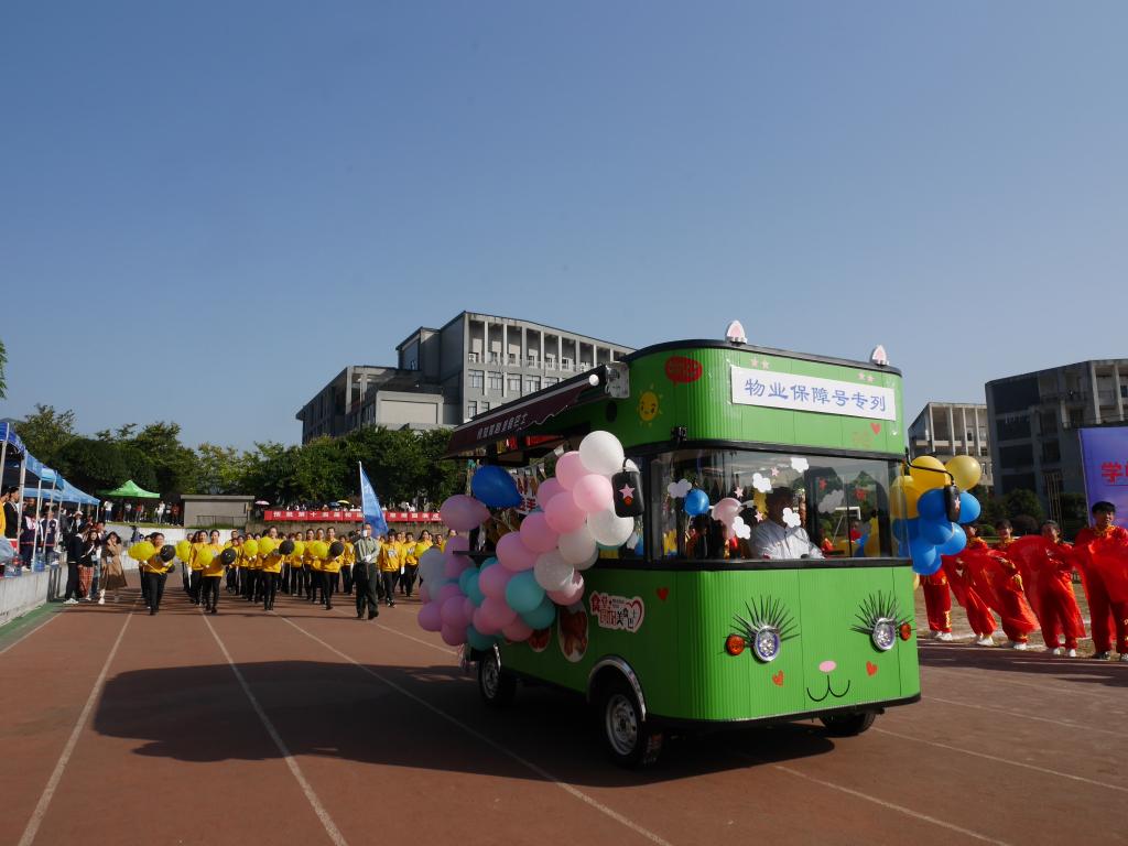 伴随着温暖的阳光和激昂的运动员进行曲,“物业保障号专列”在田径场上缓缓行驶,方块队迈着整齐划一的步伐,挥动着笑脸气球,热情洋溢的笑容,充分展示了物业分工会昂扬向上、拼搏奋进的风采和精神,赢得在场师生的喝彩与掌声。
