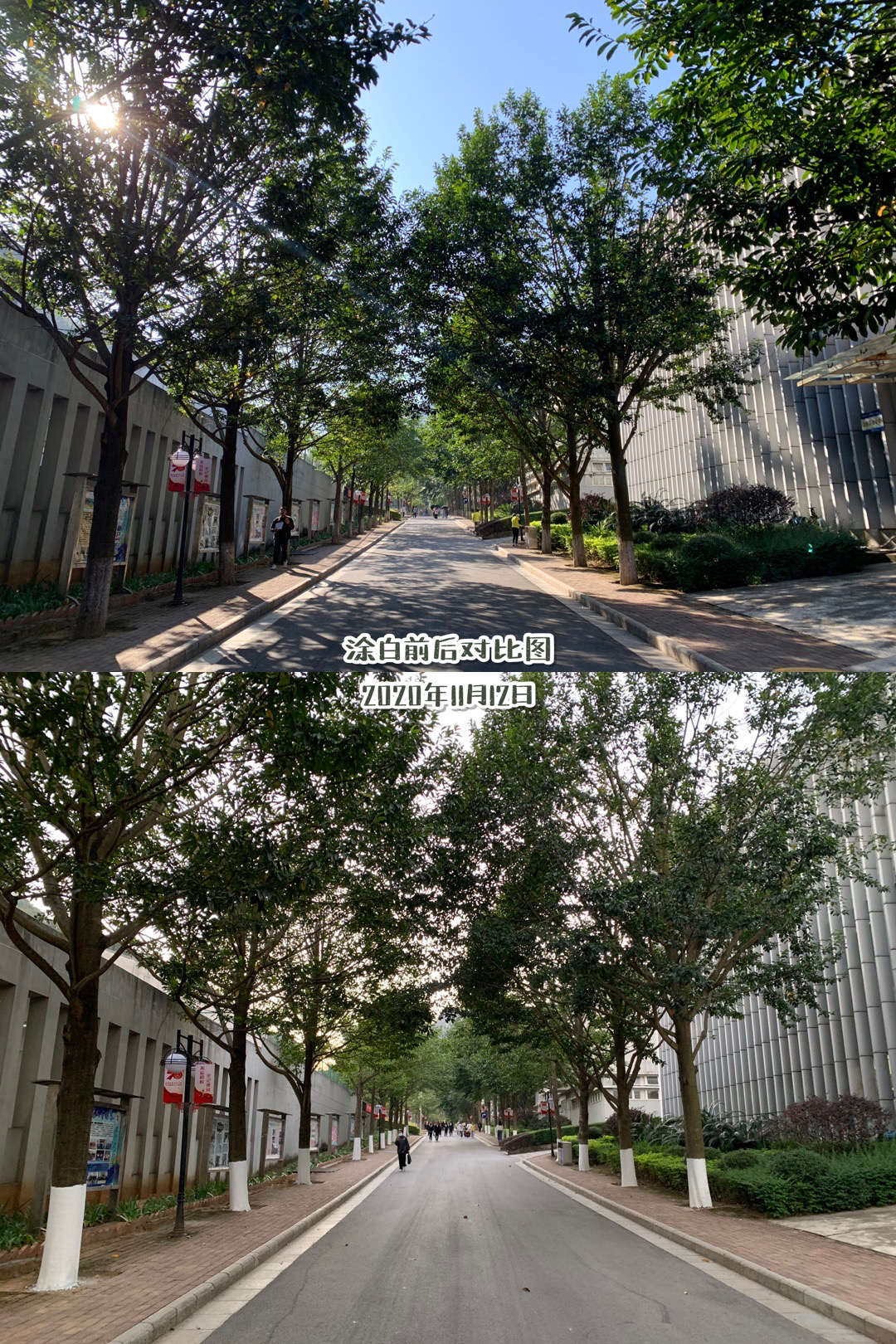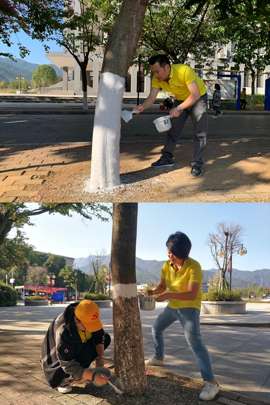 为全力保障冬防保温工作,帮助校园树木顺利过冬,11月12日下午,信科物业直属党支部组织全体党员、入党积极分子及物业公司管理人员共30人开展了主题为“护绿校园,从我做起”爱校公益树木涂白活动。