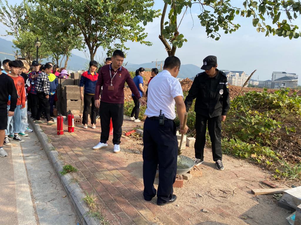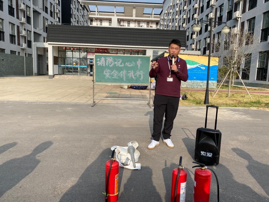 演练围绕“火灾案例分析、致灾因素、消防器材使用现场示范、火灾逃生演练”四个部分进行。首先,由后勤保障部王翀重点讲解了灭火器的不同类型、正确的使用方法及消防栓的正确操作方法,并现场示范,让大家进行灭火操作,牢记“一晃、二拉、三压、四喷”、“开箱门、取水带、拿水枪、开阀门”基本要领。最后,公寓生活老师黄媛丽结合近两年校园火灾案例,向师生们分析宿舍致灾因素,并通过现场模拟演练,让大家在发生火灾后学会如何冷静报警、处置、逃生。