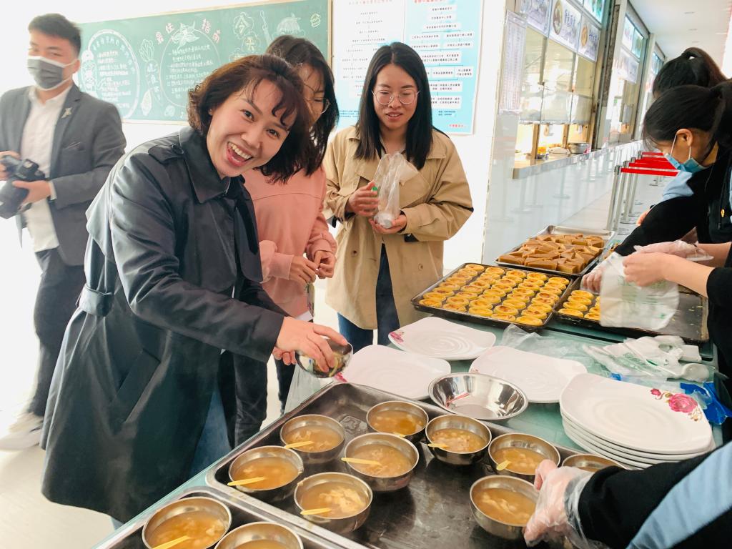 食堂为节日期间仍辛勤工作在岗位上的女教职工准备了精心制作的蛋挞、甜酒小丸子汤、红糖发糕等精致甜点,为全校女教职工送上最甜蜜的节日礼物。信科物业直属党支部党员们为女教职工们分发甜点,向辛勤工作在各个岗位的女教职工们致以节日祝贺和美好祝福!