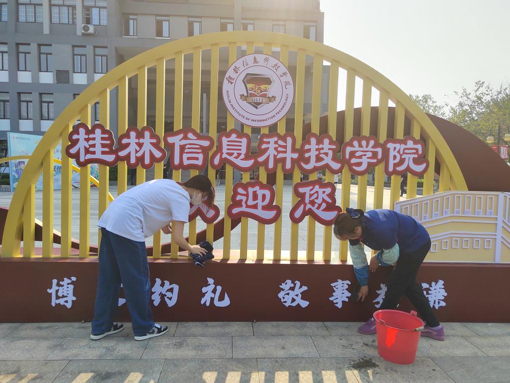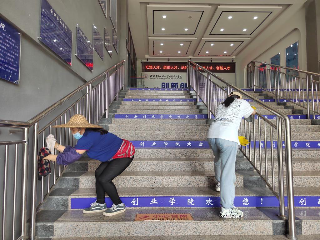活动中,支部党员带领青年志愿者们分成若干小组,与保洁阿姨结成对子,按照计划安排的清洁区域,迎着清晨第一缕朝阳,在保洁阿姨面对面教、手把手带的悉心指导下,他们积极行动,手拿扫帚、拖把、铲子等工具对校园主干道路面、绿化带、教学区公共厕所及教室桌椅、黑板等进行清理打扫,扶正共享单车,擦拭文化宣传标识牌,为校园的整洁奉献自己的一份力量,充分展现了一名党员、一名志愿者的先锋模范作用和良好的精神风貌。