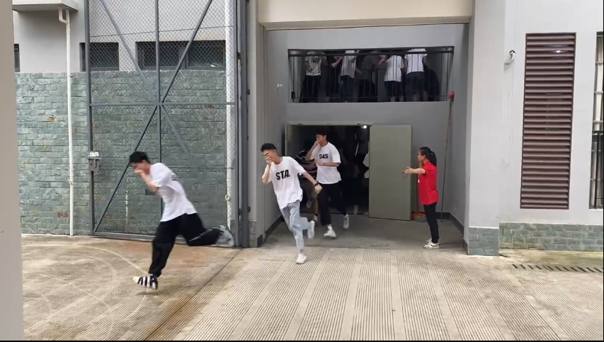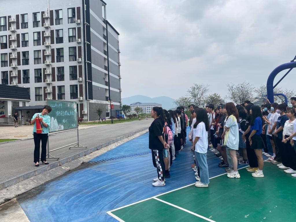 随着警报器响起,演练正式开始,学生们在公寓老师的指引下,听从指挥、迅速前进、沿着指定路线有序撤离,全员顺利到达疏散安全地带。接下来,由王全萍老师为学生讲解普及消防与防灾减灾知识以及消防器材使用方法,学生们根据老师的示范,亲身体验了消防灭火器“提、拔、瞄、压”四字法的操作流程,几遍操作下来,学生能熟练、规范地掌握消防灭火技能,进一步提高了自身防火安全防范意识和自救自护能力。