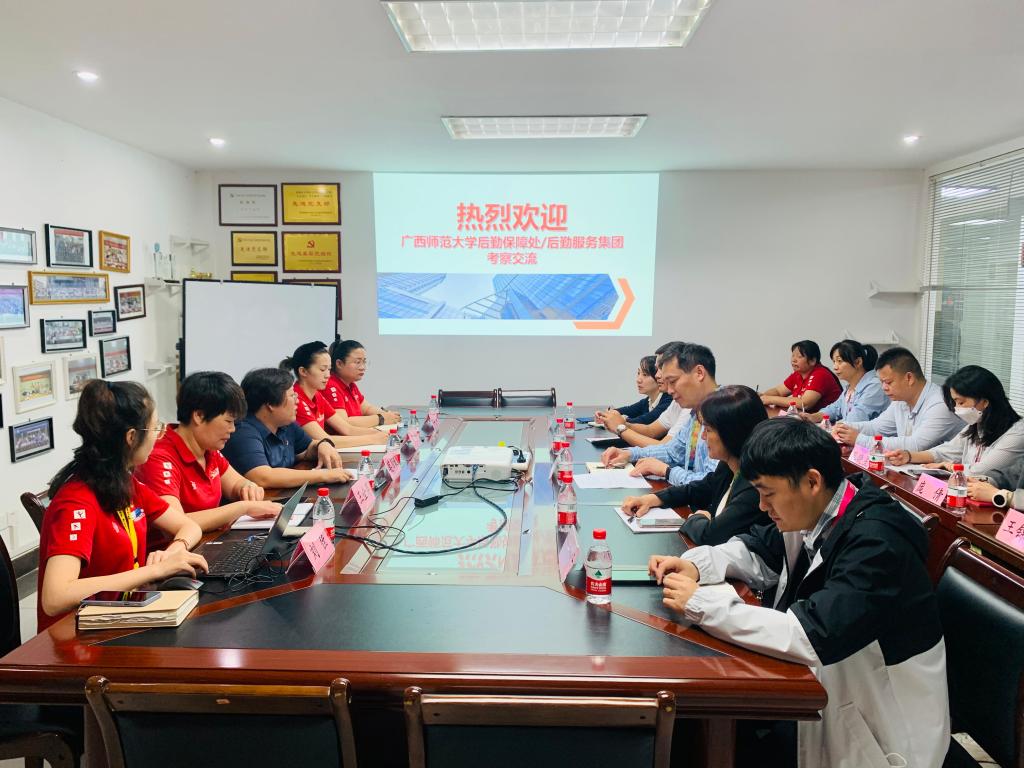 近日,广西师范大学后勤保障处公寓服务中心经理卢德林一行11人到校调研参观,公司总经理助理莫丽媛负责接待并主持召开座谈会,各部门负责人参加本次交流。