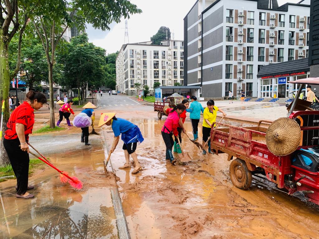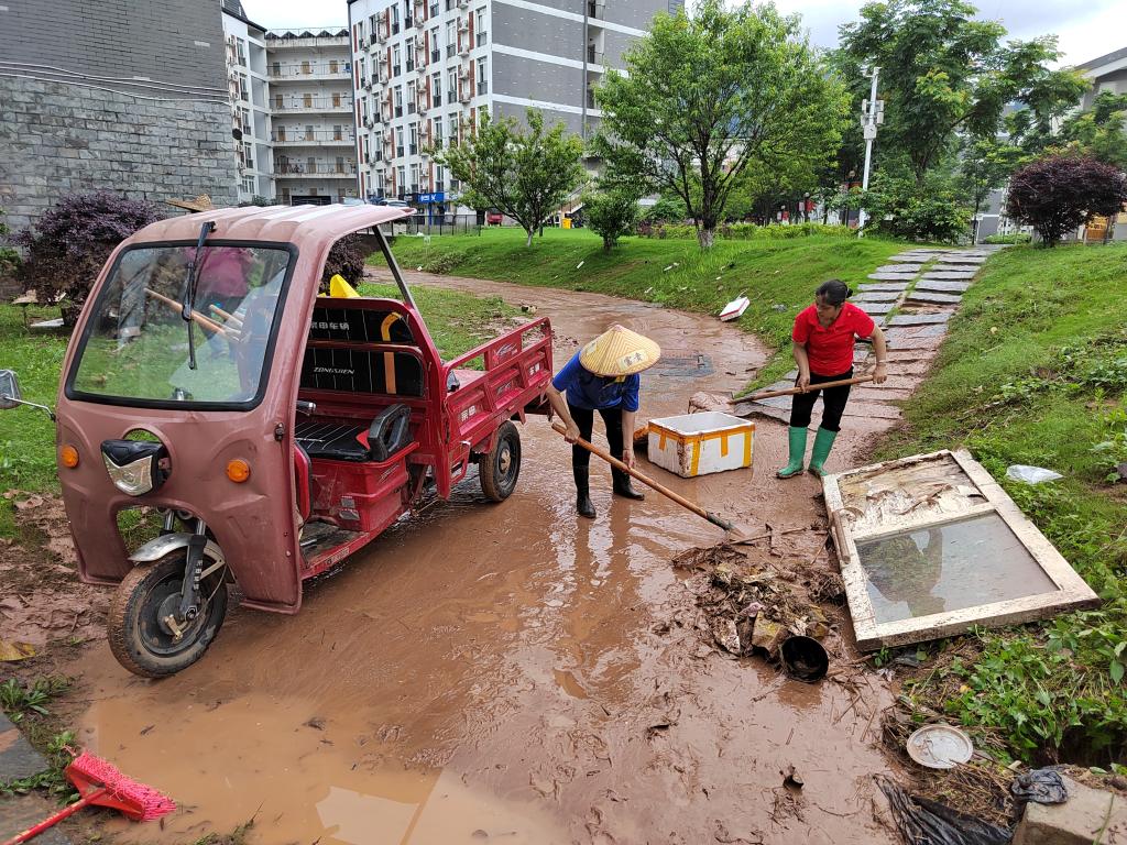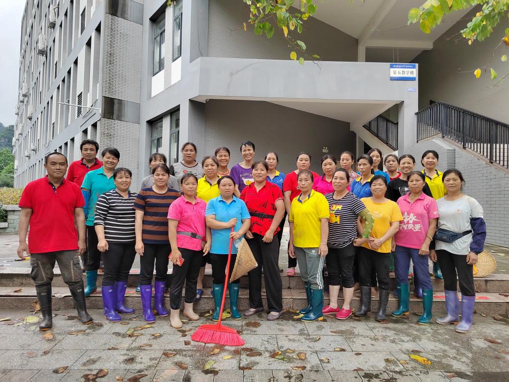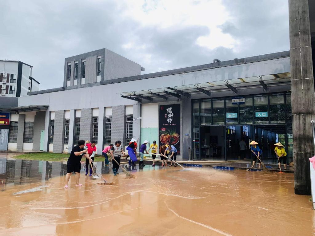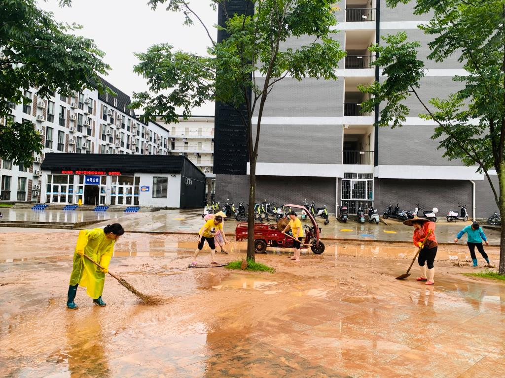 退洪后,校园生活区堆满黄泥、杂草枯枝石渣,寸步难行,30名保洁员、绿化工组成的防汛抢险队冒雨对雨水冲积杂物造成的排洪渠堵塞进行疏通,清除主干道淤泥、清理排污管外溢污水及人工湖捞渣等工作。工作中,全体员工大局观念强、主动参与、团结协作,连续作战9个多小时,顶着大雨和闷热,不怕苦、不怕累、不怕脏,共计收集清运垃圾35车、黄泥56车,圆满完成校园抗洪清淤等任务,快速恢复校园道路干净通畅。
