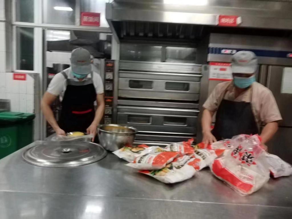 本次校内洪涝导致6号公寓两千多名学生无法正常出入公寓大门。饮食中心迅速采取有效措施,利用食堂班组长微信工作群部署相关工作,召集一、二食堂员工凌晨4点开始制作面点、粥等早餐2000余份,协调各班组员工做好公寓送餐工作安排,保证每名受困学生都能吃到可口、营养的早餐,并积极联系食堂供应商,了解食堂班组当天送货情况,协调大型货车解决供应商送货问题,确保了食堂各班组早、中、晚餐供餐不受影响,做到“用心、贴心、暖心”服务,有效保障师生就餐需求。