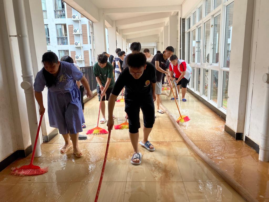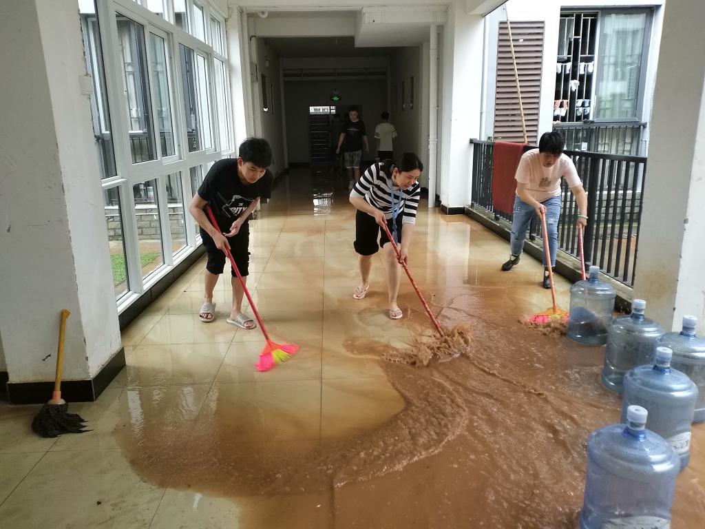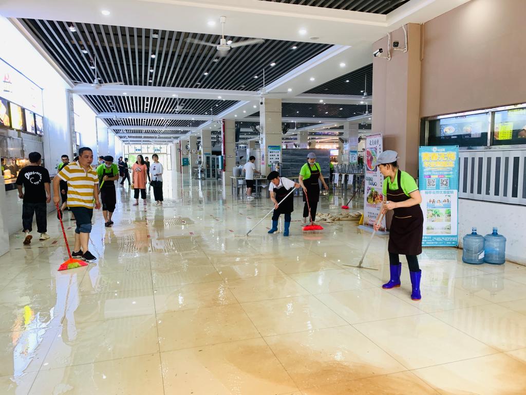 在此次强降雨造成的洪灾中,物业公司全员不畏艰难,牢记守护校园初心,师生安全在首位。总经理助理莫丽媛凌晨3:00赶入校,紧急部署,食堂物资协调、热水机组运作、人工湖疏通等现场指挥,员工李连旺、李付香等在家中鱼塘被淹、玉米地被冲毁的受灾情况下,在接到电话进校参与抗洪清淤时,无条件第一时间到达校园,体现出了强烈的以公司为家、以校园服务为重的责任意识和大局意识。