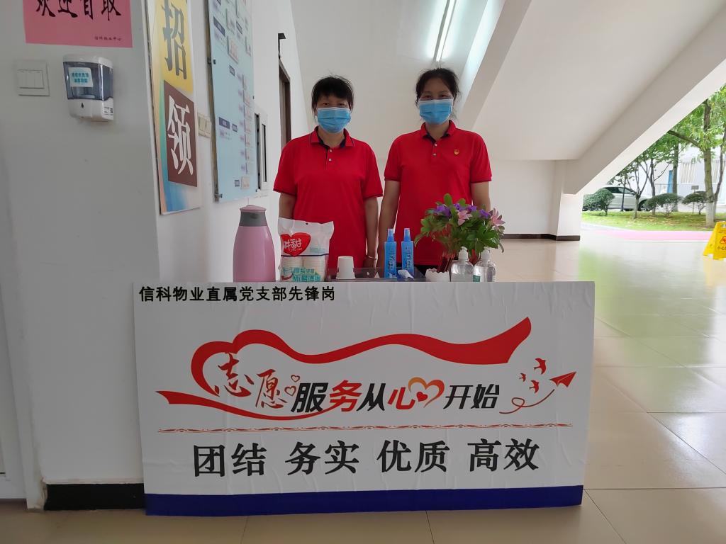 考试当日,服务保障人员凌晨4:00到校,7:20前完成所有考场的卫生保洁、消杀、通风等考务工作。信科物业各部门负责人全员在岗、坚守一线,并设立“支部党员先锋岗”两处,免费为学生提供口罩200余个、考试铅笔橡皮擦20余套,及驱蚊水、罗汉果茶等贴心服务,实现考试打铃精准零误差,得到了广大师生的高度赞许。
