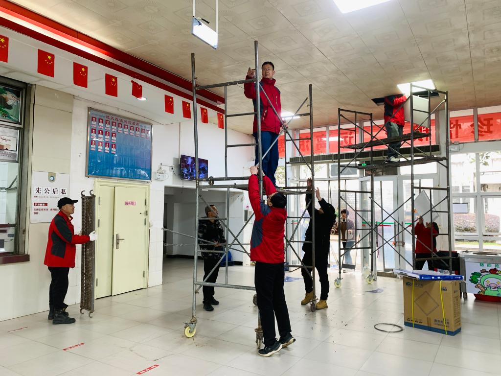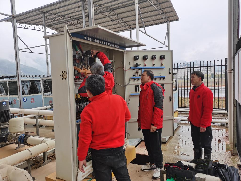 维修人员对校内电梯、中央空调、供电系统、供水管网、热水机组、变压器等进行了全面检修、保养,2月10日起,公寓全天18个小时热水供应;对全校路灯进行检修,确保师生夜间行路安全;为保证食堂正常开餐,提前进行设备维护和保养、线路检修;保证全校水通电亮的正常运转;督促校园商铺备货上架和设备检测,检查商铺货品质量和商铺卫生,有效了营造和谐良好的购物环境。