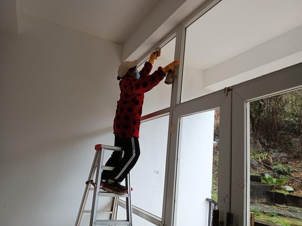 公寓人员齐心协力对楼栋内各个区域进行全面的卫生清洁、2326间宿舍通风,全面细致消毒,清洗消毒饮水机,为学生提供舒适整洁的住宿环境。