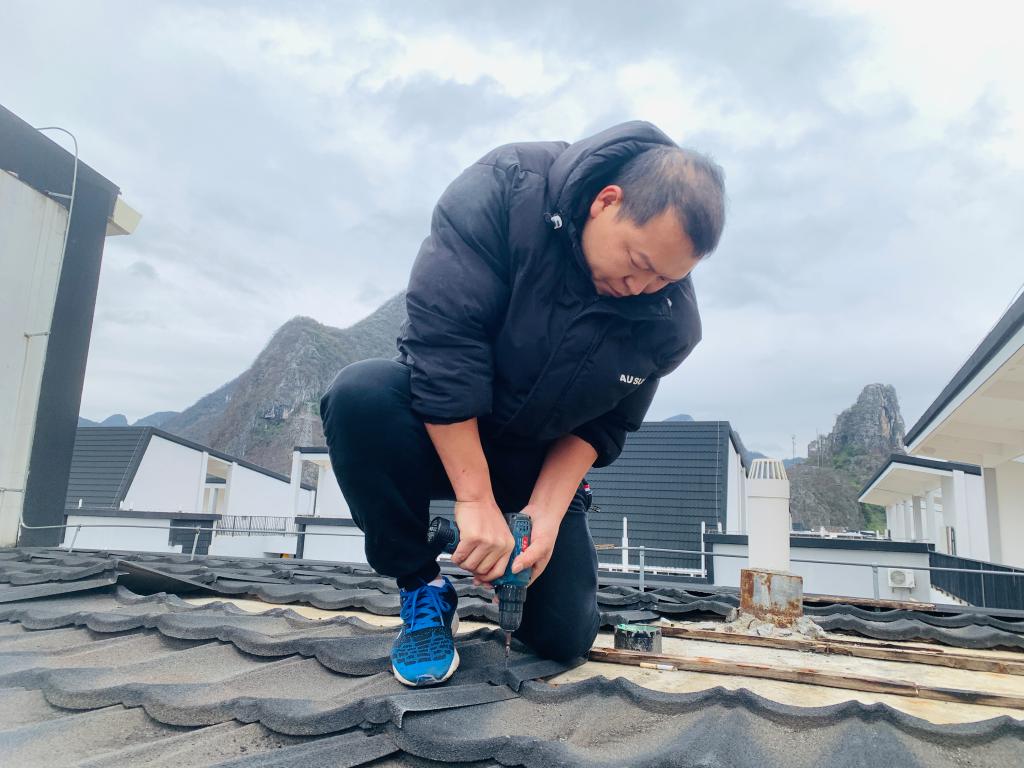 2月13日上午,维修中心五名维修人员分别对五号及七号公寓楼顶进行了天面铁皮维修加固工作,为师生员工人身安全成功解除了安全隐患。