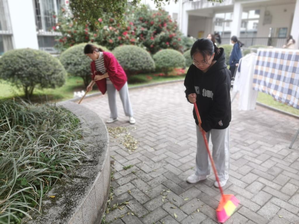 活动中,同学们在生活老师的带领下,分工合作,以小组为单位,有条不紊地对楼梯扶手、画框、消防设施等进行了清洁擦拭,完成了楼道地面、楼顶卫生、绿化带垃圾的捡拾清扫,让学生更进一步体会到劳动的快乐与价值。