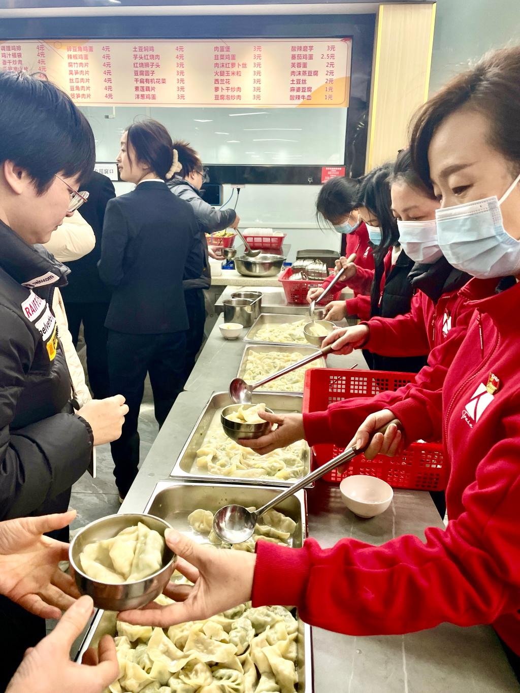中午时分,大家将亲手包的饺子送到了就餐的老师和同学面前。看到他们品尝着自己包的饺子,活动现场弥漫着一种难以言表的喜悦与温馨。这份热气腾腾的饺子,不仅仅是一份简单的食物,更是一份深深的祝福和关怀。