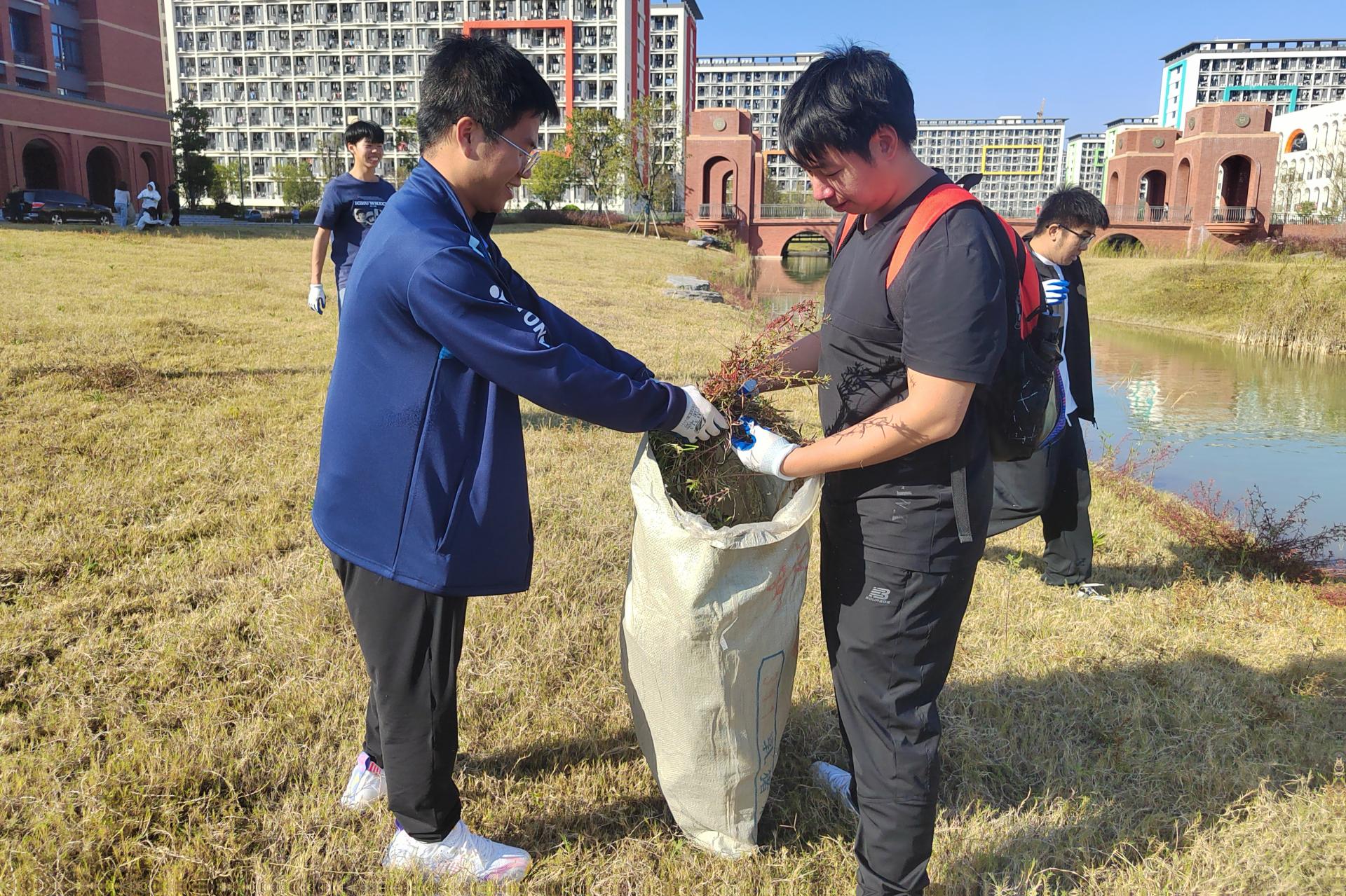 在活动中,200多名学生对知行楼前后、明月湖周围分批次、分区域有序进行了杂草清除、垃圾清理等工作。老师们身先士卒,带领同学们共同劳动,还给同学们传授了绿植养护、环保知识,加强了师生间的沟通与协作。同学们深刻体验到劳动的意义,认识到保护环境的重要性和必要性,学会了如何更好地爱护校园环境。