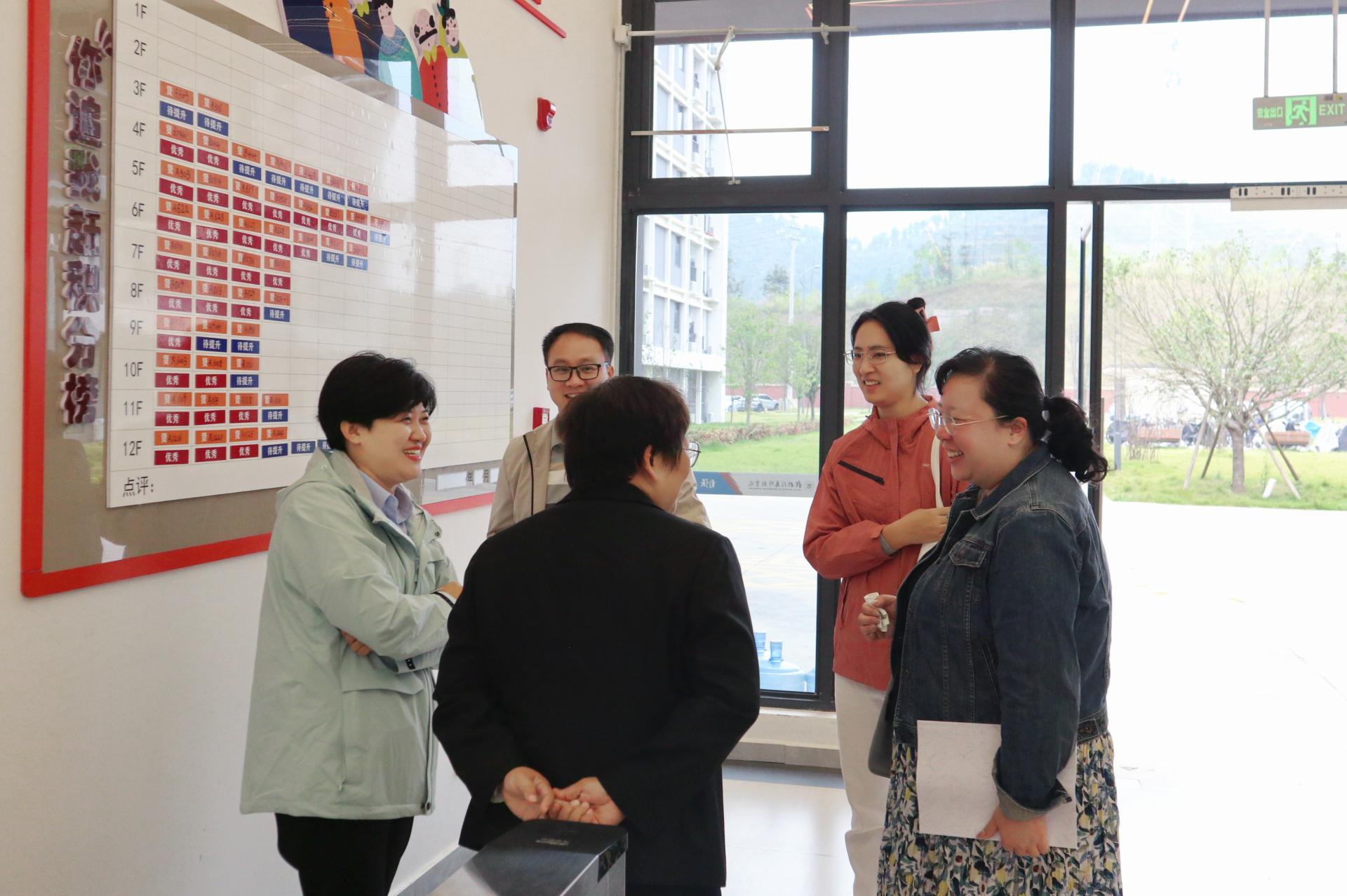 会后,桂林学院一行实地参观了beat365官网学生公寓,全面了解了公寓的文化建设、基础设施建设以及特色服务项目。他们深入学生宿舍,查看了宿舍的卫生保持情况和设施配置状况,并与学生进行亲切交流,深入了解学生的生活习惯与需求。