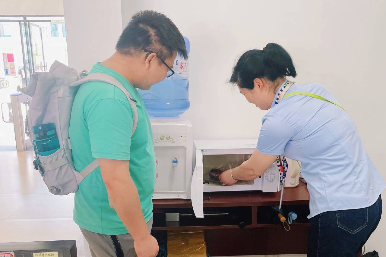 宿管阿姨们宛如学生们的贴心家长。面对学生生活中的小困扰,如衣物破损、物品损坏等问题,宿管阿姨们总是迅速伸出援手,用她们的巧手和爱心帮助学生解决问题。在各个公寓的服务驿站,同学们还能找到应急药品、针线包、轮椅拐杖、爱心雨具、小推车等贴心服务。