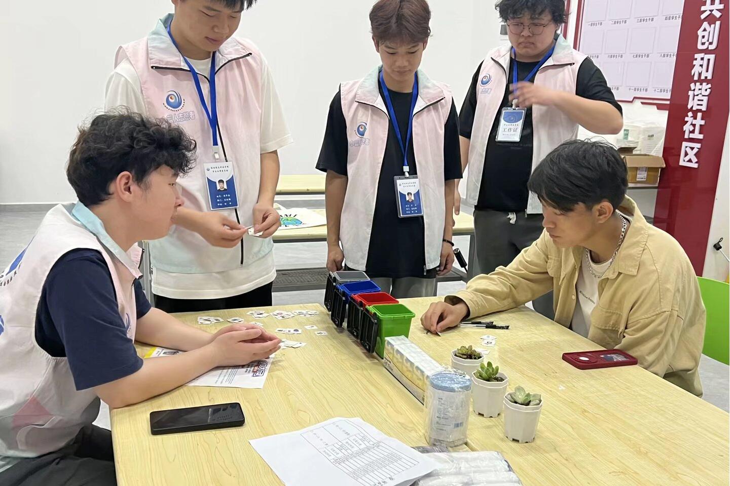 活动紧扣“绿色生活,分类先行”主题,设置“快闪问答”与“垃圾分类小游戏”两大环节。在快闪问答中,工作人员随机邀请学生回答节能知识题目,答对者获赠多肉植物、书签等环保奖品;垃圾分类游戏区则通过模拟四色垃圾桶分类挑战,帮助学生掌握分类技巧,参与者根据正确率赢取环保袋、垃圾袋等实用奖品。活动现场气氛热烈,学生纷纷表示“边玩边学,环保知识更易入脑入心”。