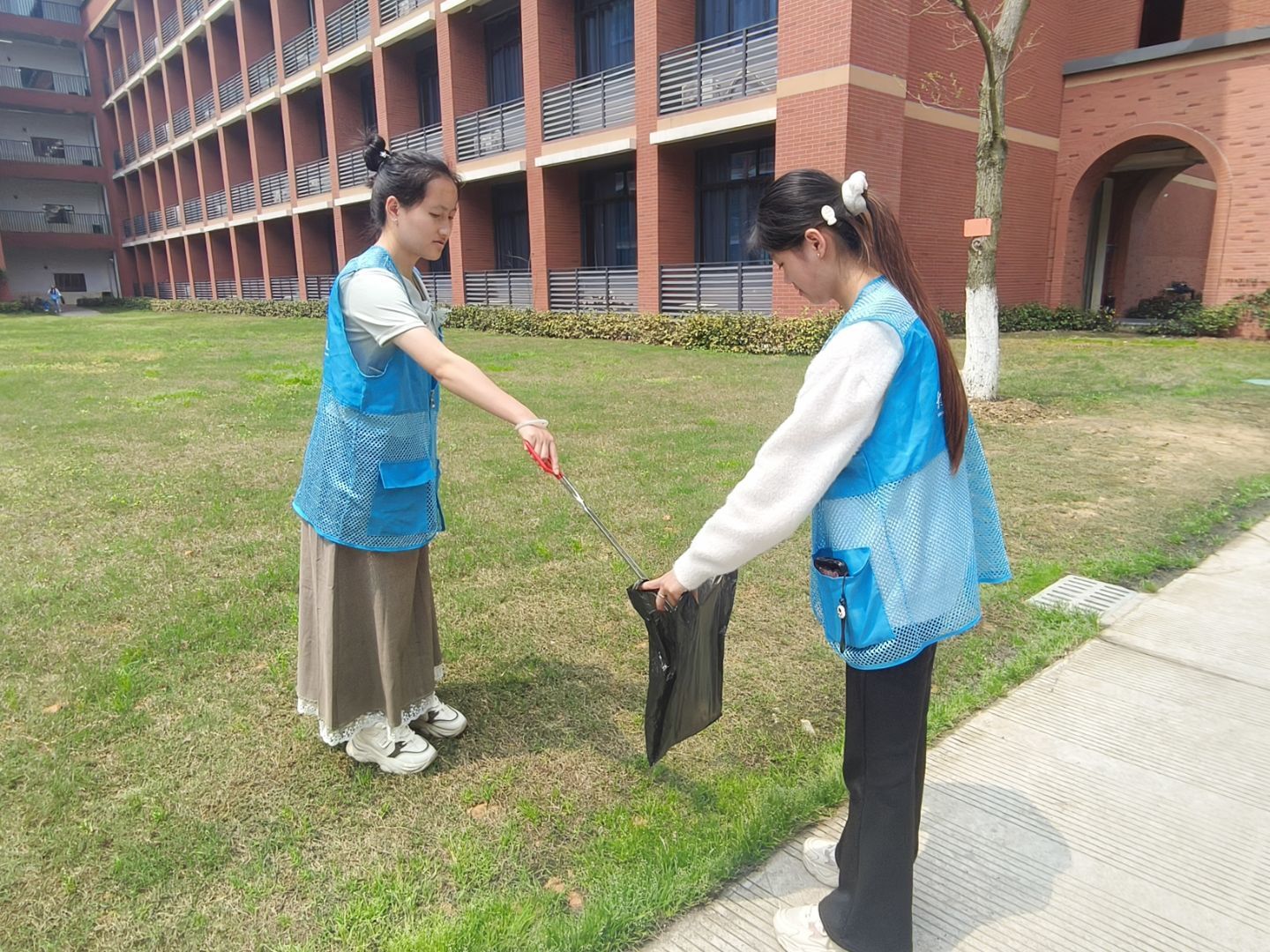 活动现场,志愿者们身着统一的蓝色志愿马甲,以小组为单位有序开展校园环境清洁行动。大家手持垃圾夹、垃圾袋等工具,深入校园草坪绿地、教学楼道路沿线、非机动车停放区等公共区域,对散落的白色垃圾、烟头、枯枝杂物等进行全方位清理。通过“清洁校园”这一载体,同学们不仅在实践中体悟劳动价值、锤炼吃苦精神,更深刻理解了雷锋精神“服务人民、助人为乐”的时代内涵。活动有效强化了青年学子的集体荣誉感与社会责任感,让劳动教育从课堂走向生活,从理论融入实践,实现了育人实效的升华。