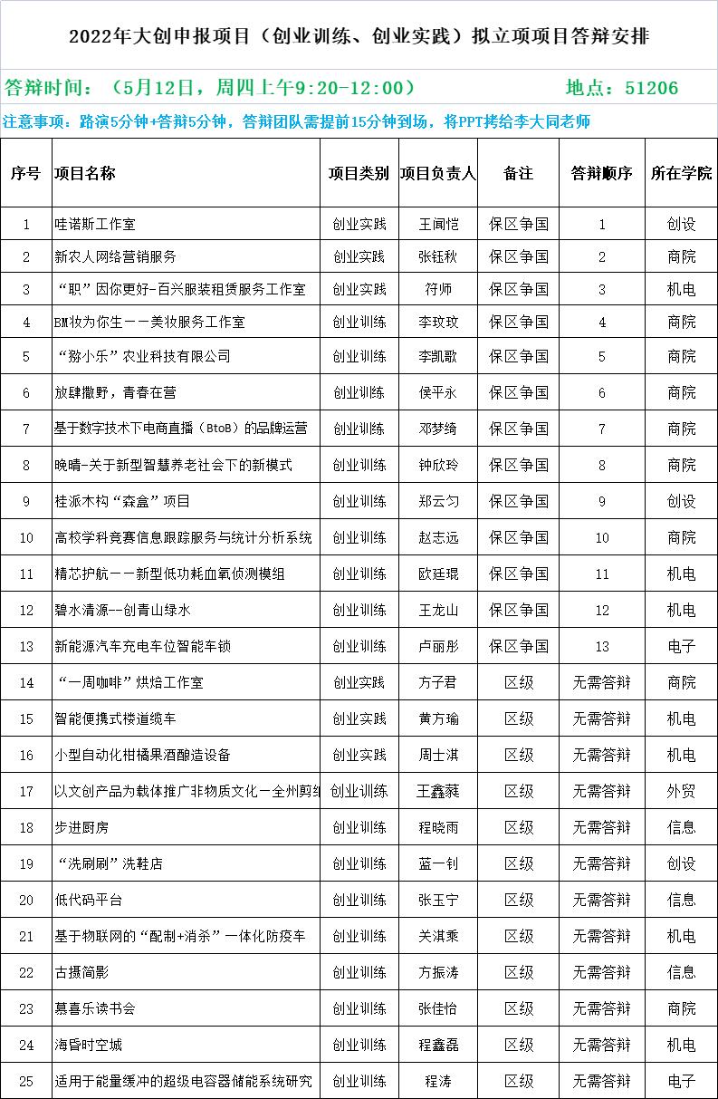 beat365在线唯一官网2022年大学生创新训练、创业训练、创业实践项目立项答辩安排表