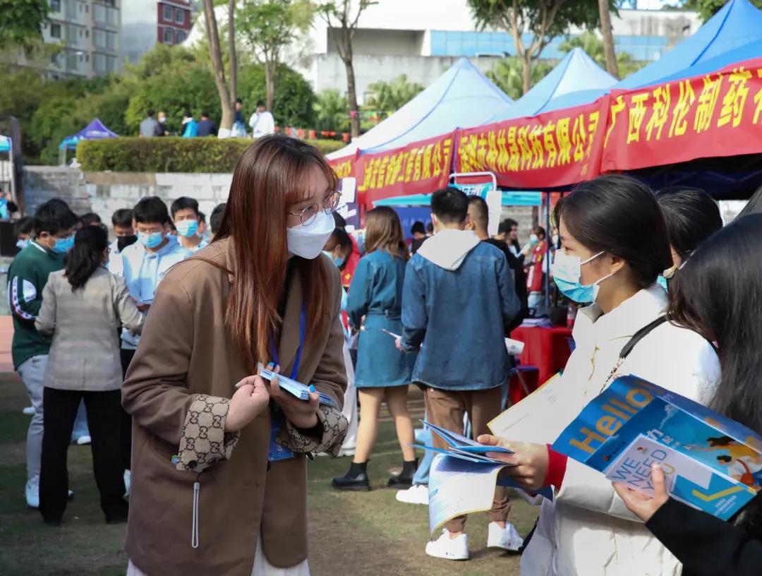 11月11日上午,学校在田径场举办2022届毕业生“双向选择”洽谈会。来自区内外近300家企业前来招聘,提供信息技术、软件开发、机械工程、财务管理、市场营销、环境设计等就业岗位7000余个岗位.参加双选会的用人单位和提供就业岗位再创历史新高。
